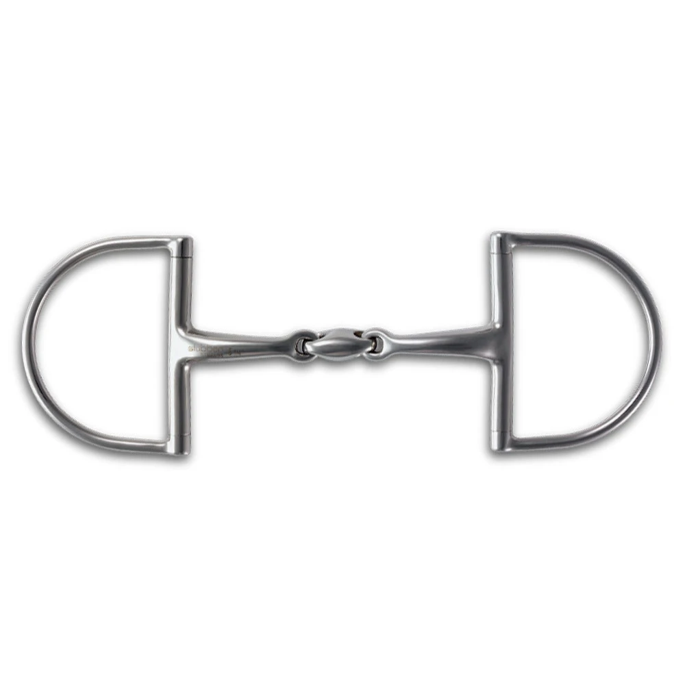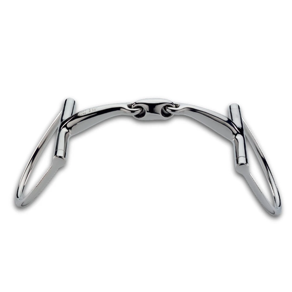 - Specific shape of the D-rings bear on the outside of the mouth as a gentle correction to resistance to the direct rein.