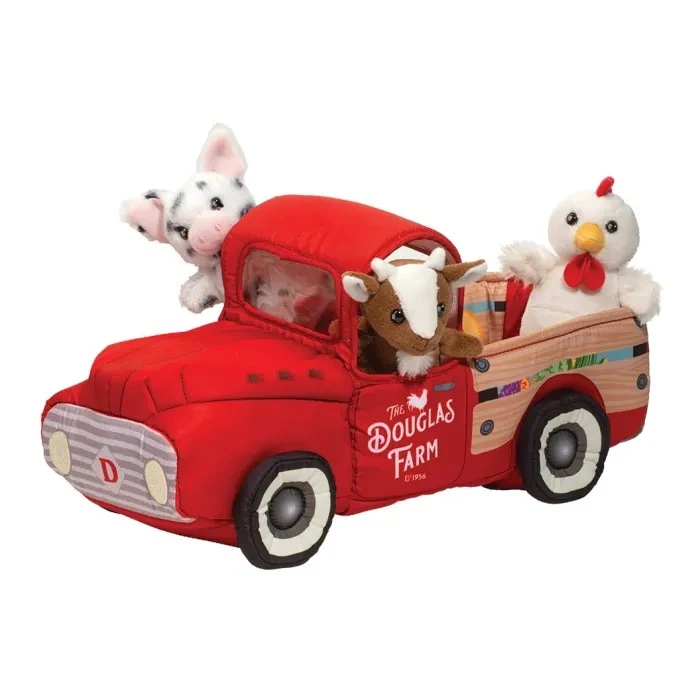 Honk! Honk! The Douglas Farm Truck is on its way to take care of those daily farm chores! With a classic look and soft plush construction, our Farm play set is ideal for the littlest farmers. Its three plush finger puppet friends include a Goat, a Chicken, and a spotted Pig.