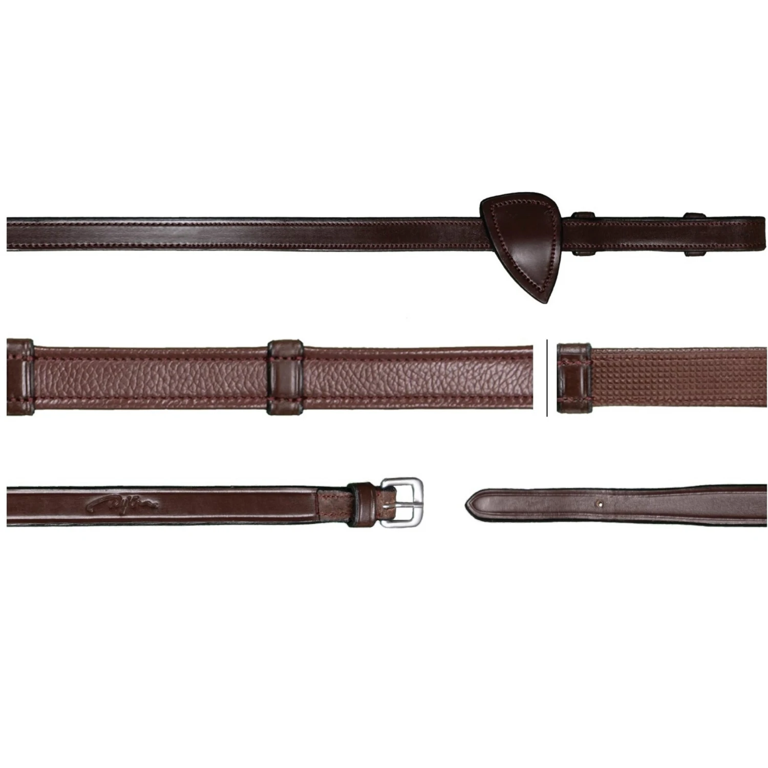 Dy’on New English Collection Hunter reins extra soft leather with rubber grip lining.