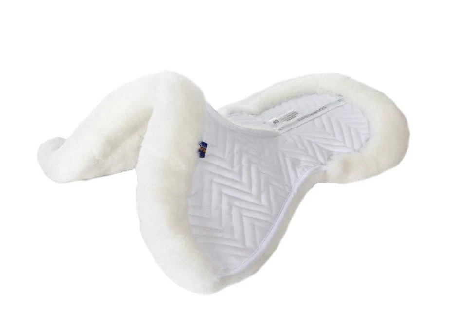 This pad features the best sheepskin in the industry. The pad fits around the saddle panels keeping the horse’s top line conformation in mind. It frees the movement of the shoulders by minimizing friction and pressure points on your horse. The PJ pad brushes off and washes easily; it’s durable yet supple. It is available in either white, black or brown.