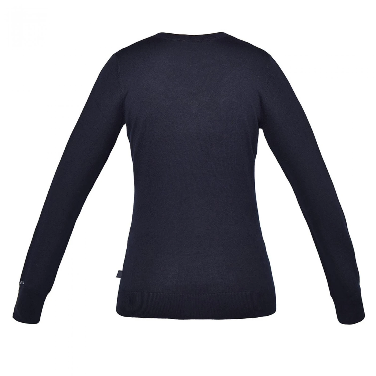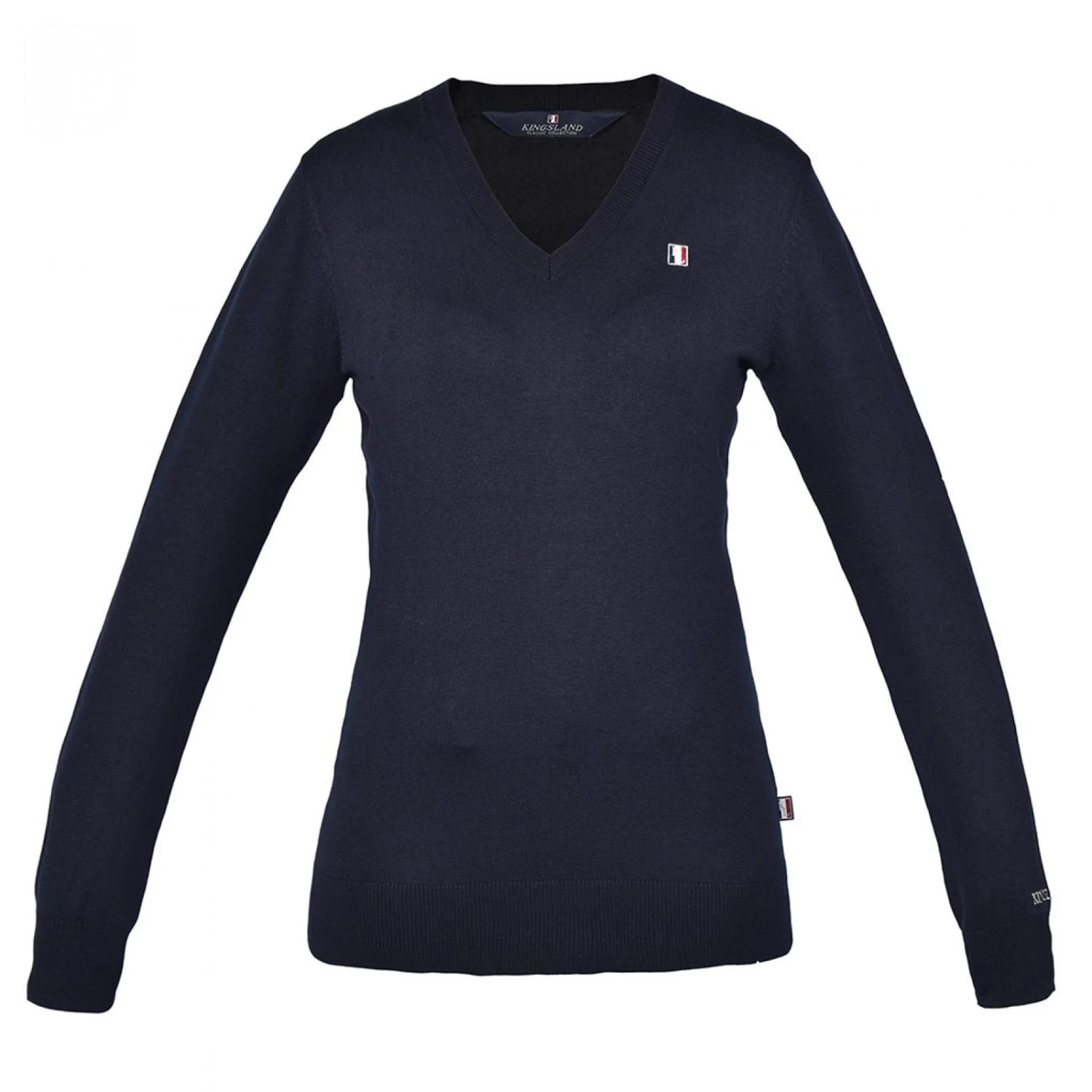 Flat knitted v-neck with 2Ă—2 rib on neck, cuffs and hem. Kingsland corporate embroidery on chest. KL corporate woven tab in left side seam. Kingsland embroidery on lower left sleeve.