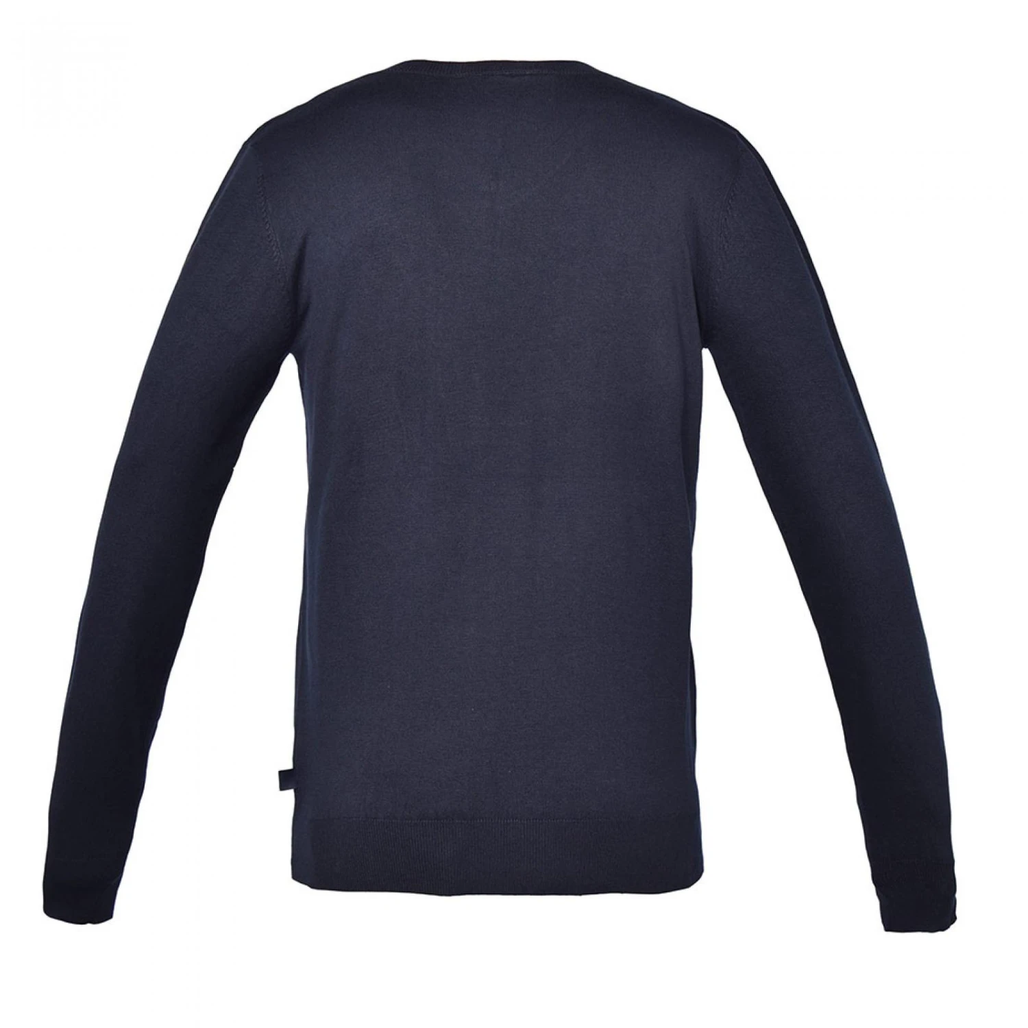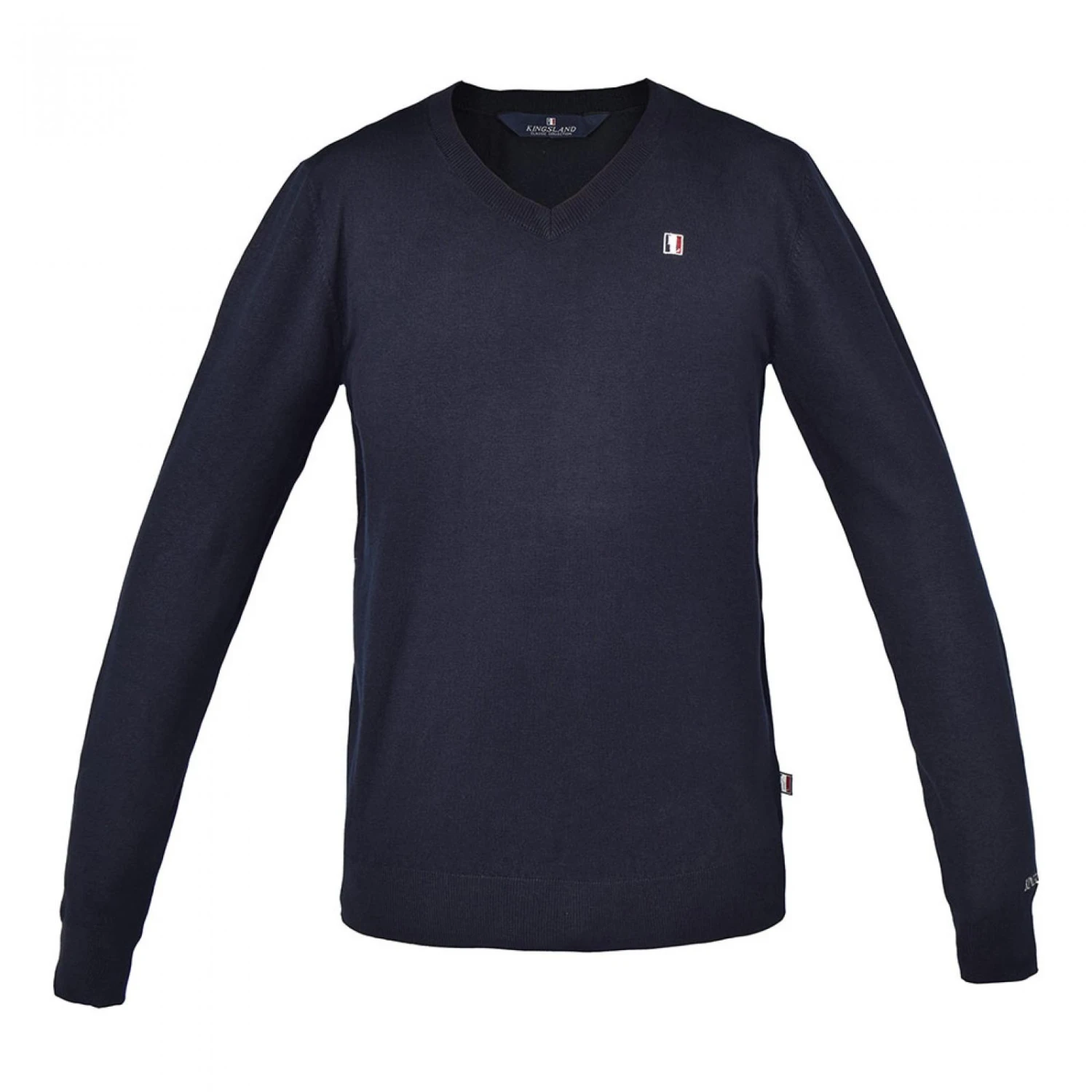 Flat knitted v-neck with 2Ă—2 rib on neck, cuffs and hem. Kingsland corporate embroidery on chest, KL corporate woven tab in left side seam. Kingsland embroidery on lower left sleeve.