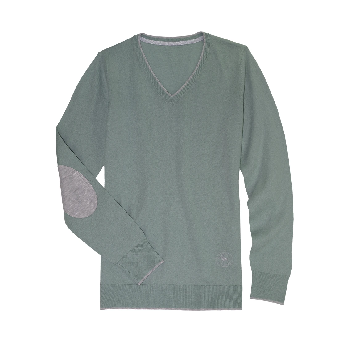 Extra fine gauge knit for lightweight warmth and all-season comfort, the innovative yarns add cool climate control and moisture wicking performance. Elbow patches and contrast tipping detail add a refined level of elegant appeal. Perfect over a show shirt, or on its own transitioning it from riding to street wear.