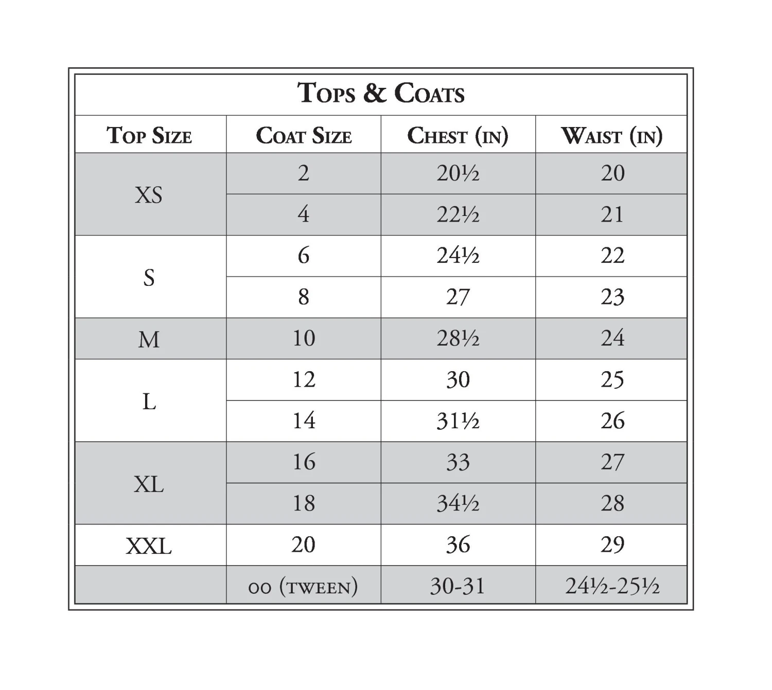 The Bailey Jr. Shadbelly combines a timeless design with cutting edge 37.5® technology to form the perfect style for even our youngest R.J. Riders. This patented thermoregulation technology keeps you comfortable by helping your body to maintain an optimum core temperature of 37.5° Celsius (99.5° Fahrenheit), which is ideal for peak athletic performance. The particles embedded in the fabric are naturally derived and will never wash out. For maximum performance, pair with the R.J. Classics Maddie show shirt which also features 37.5® technology and together, create a perfect layering system. The fabric also features the perfect balance of structure and stretch to maintain that traditional styling, but with the perfect among of stretch for ideal comfort during the toughest of competitions. The reversible 2-piece point design (which features canary on one side and a modern pattern on the other) eliminates the need to fully unbutton the points to take the coat off and on. Stocked in Black in Regular Length from sizes 8R-16R. Other sizes and Longs by Special Order.