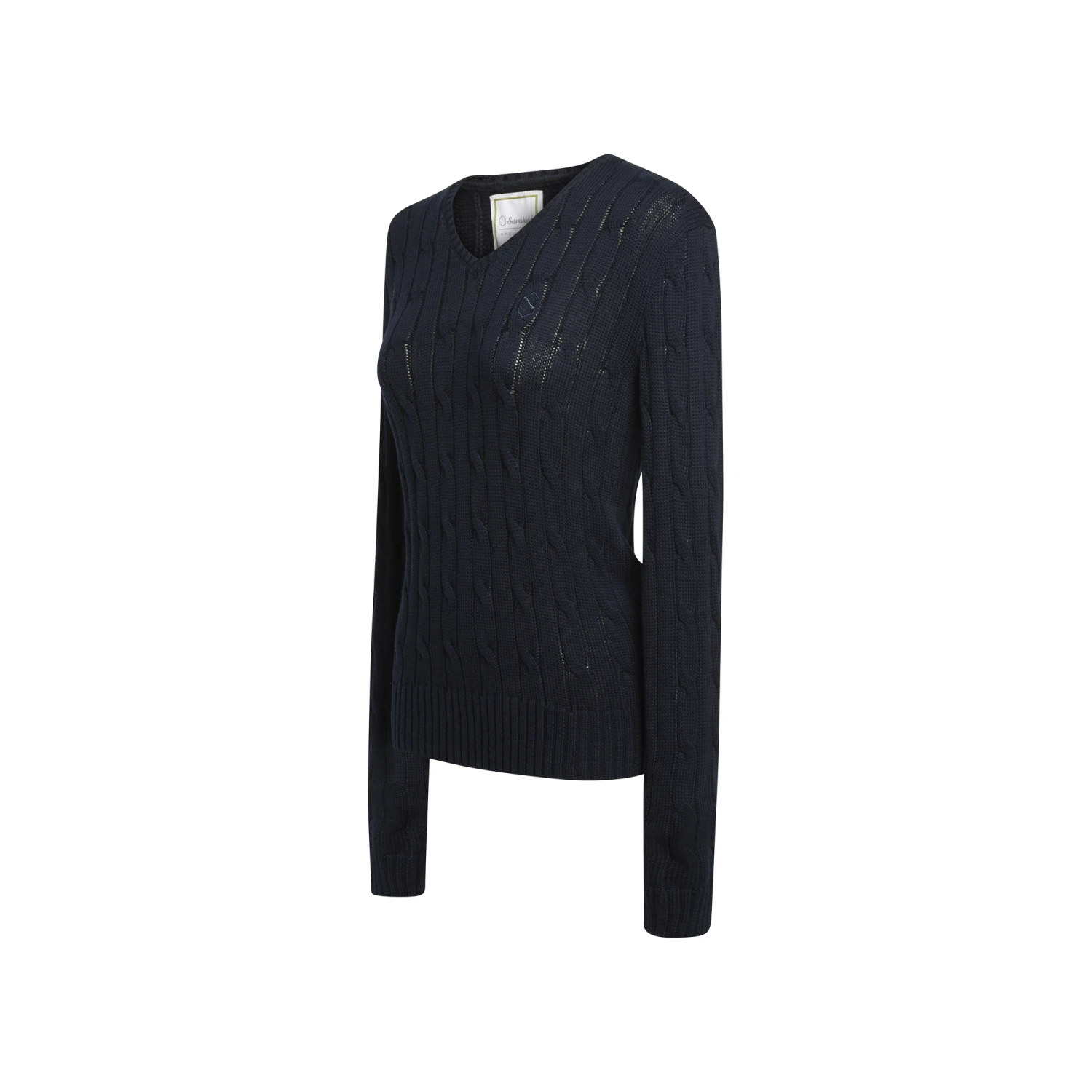 Samshield’s Lisa Twisted Knit sweater is a staple for every Equestrian’s wardrobe as the perfect piece to wear over a competition shirt, during training or out with friends. The classic design, V-neck and soft touch cotton make this garment a truly multi functional item. The 100% cotton material is long lasting, easy care and machine washable at 30’C. An embroidered Samshield logo sits on the chest with subtle Swarovski® decoration through the center.
