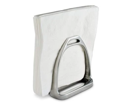 Proclaim your Equestrian lifestyle with functional, hand-crafted aluminum artwork. Detailed, realistic stirrup irons, hand-crafted stand to display and dispense napkins on your table or counter. Standing design allows for easy dispensing at any time.