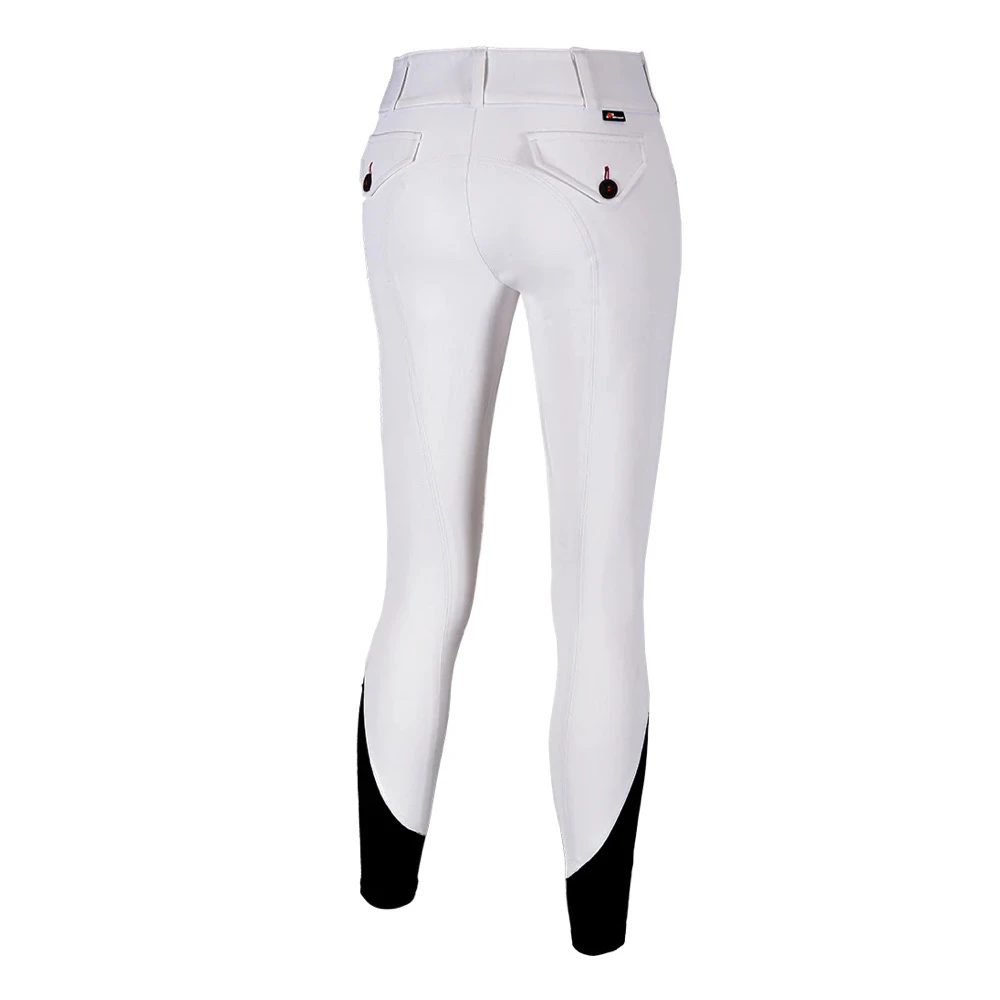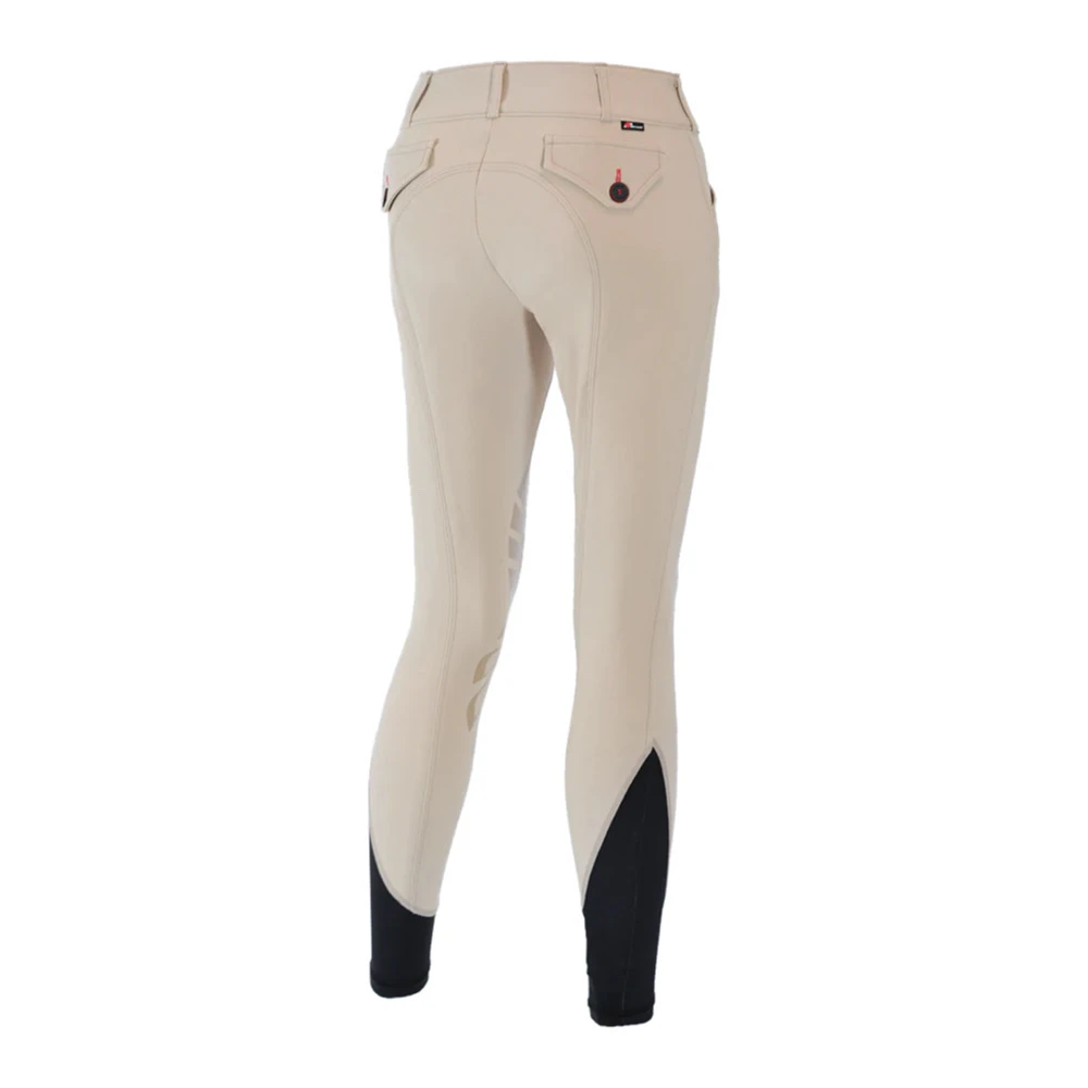 Made to enhance your comfort in the saddle. Lower mid-rise, wide waistband, and fitted knees for a streamlined fit. The soft stretchy lower cuff and flat lock stitching eliminates unnecessary seams and fabric for a smooth and comfortable fit under boots.