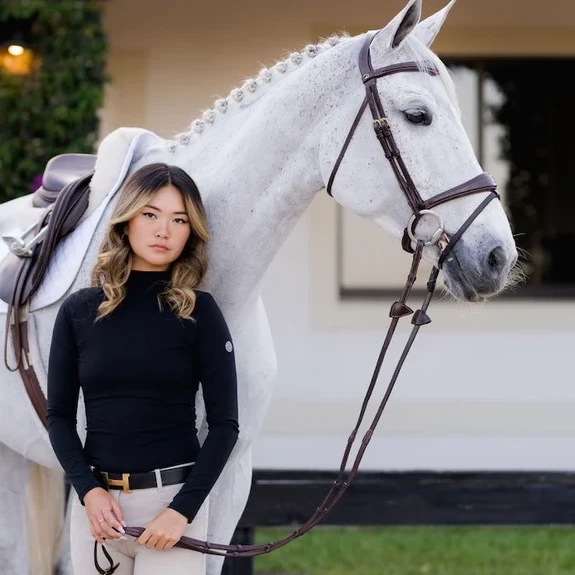 Meet CHLOE – TKEQ’s high collar technical top changing the sun-shirt game. This refined turtleneck has the mobility, breathability & stretch you love making it an essential in your equestrian wardrobe.