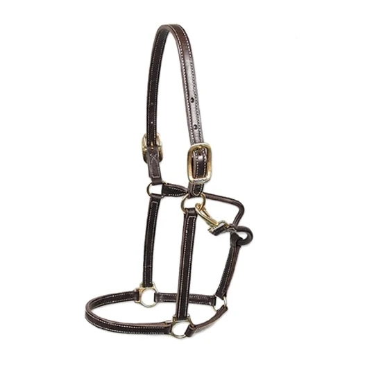 Walsh Halter in 3/4″ leather with fixed chin and snap throat latch. This double stitched halter with a straight chin offers a great look on those horses that are juvenile or have a more refined head.