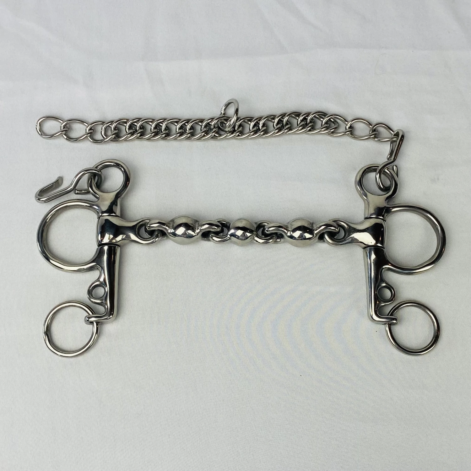 A multi-link mouthpiece helps prevent the horse from leaning.
