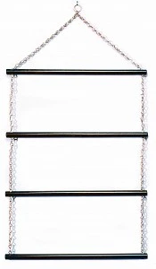 Horse and pony blanket holder. Made of hardwood dowels & brass plated chain. Convenient for horse blankets, horse liners, sheets, rugs and saddle pads. Attractive and very functional tack room blanket organizer. Colors: Stocked in Old World Walnut with Brass Chain. Other colours available by Special Order: Dark Walnut, Natural Cherry, Special Walnut, Cordovan, Mahogany, Cinnamon and new black lacquer. Chrome chain is also available.